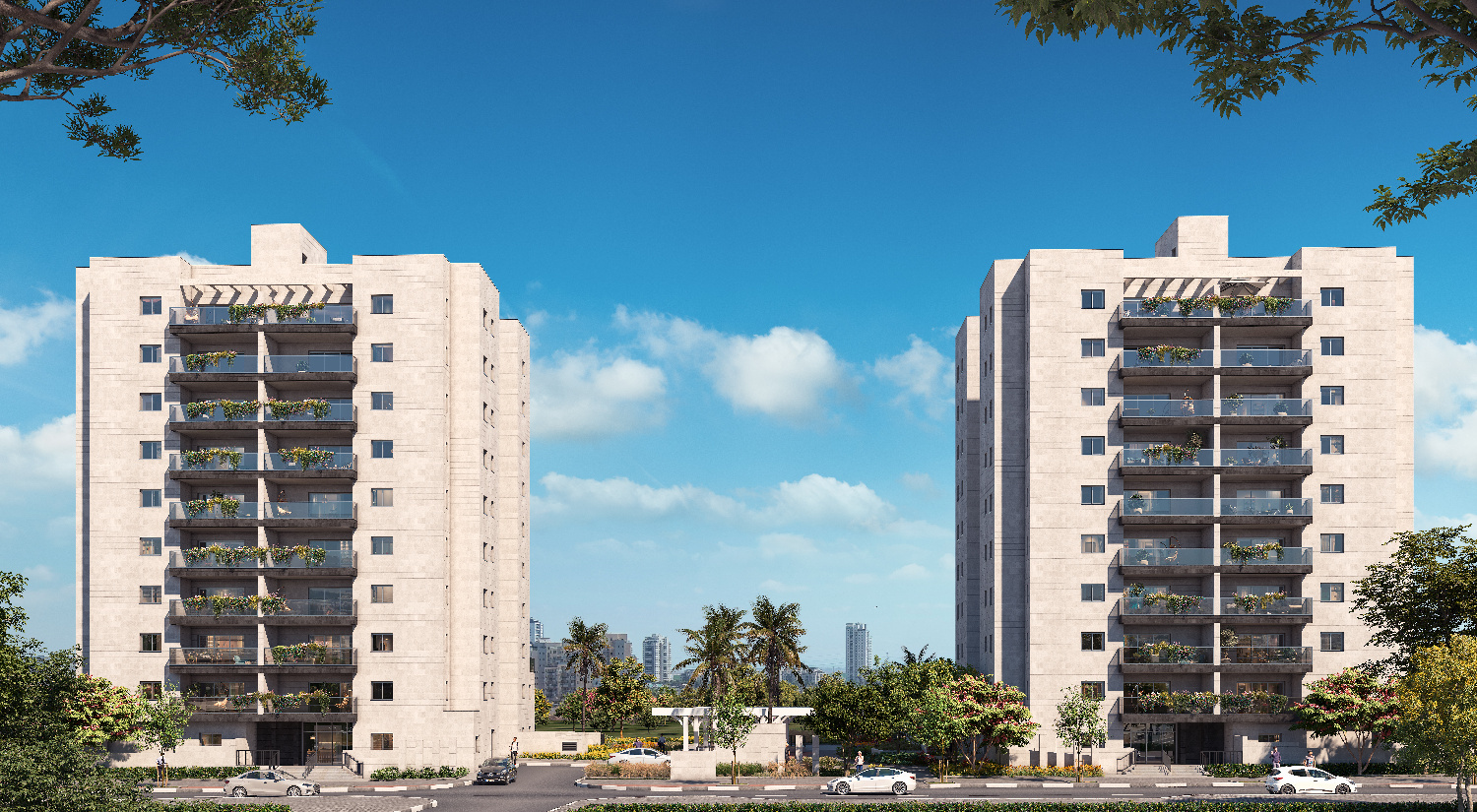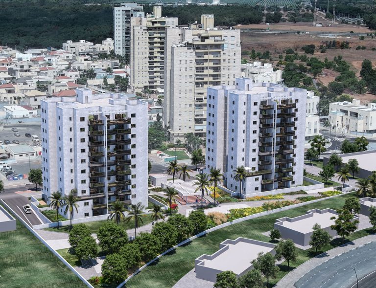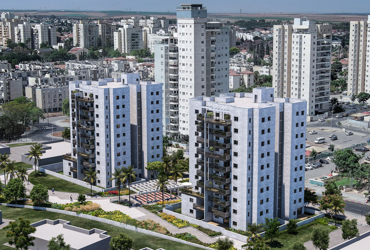 THE GATE שער העיר – 78 יח"ד בשני בניינים בני 9 קומות, בהם דירות 3, 4, 5 חד' ודירות גן בגדלים שונים